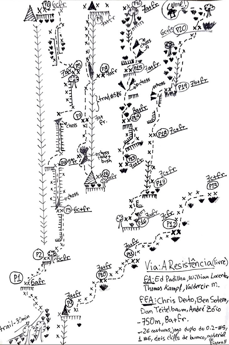 Climbing: Tell us more about the original Brazilian developers of this route (Ed Padilha, Willian Lacerda, Vladesir Machado, and Thomas Kampf)? Did you reach out to them before trying to free their climb?