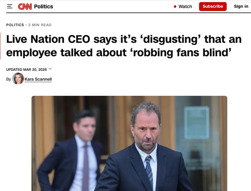 I won’t do a lot of context here. If you want more background, I previewed this decision in my piece on Sunday, going through the history of the company. It’s been 16 years since the original toxic merger of Live Nation and Ticketmaster, and 32 years since the iconic fight between Pearl Jam and Ticketmaster. The Biden administration filed the case, Trump tried to sabotage it, but state attorneys general kept at it. And won. Here’s their main lawyer, Jeff Kessler, celebrating the decision.