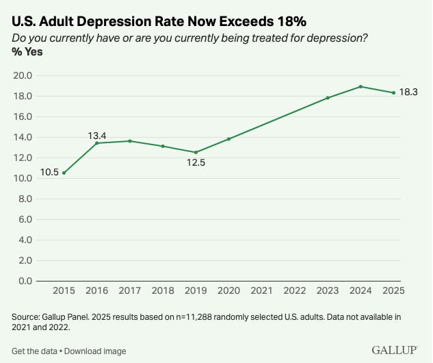 Mental health care is a particularly important area to focus on, because America is not in a great place, head-space wise. We’re increasingly depressed, and related metrics, like the suicide rate and drug overdoses, have also increased. Professional burnout across the board is going up, and every time there is some form of mass killing, the conversation turns in part to the crisis of mental health. There are many reasons for this situation, from broad alienation to loneliness to the collapse of communities. But we also just need more care.