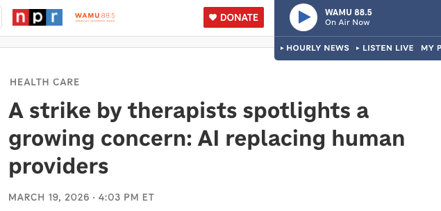 But the situation isn’t being discussed as an attempt of management to cheapen care. It is instead being framed as a question of whether AI will or should replace therapists.