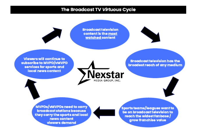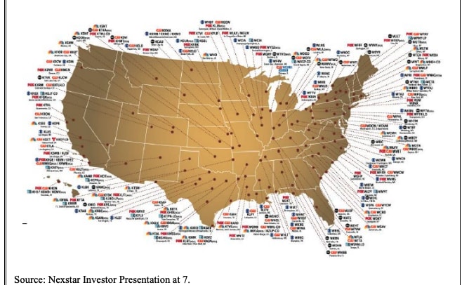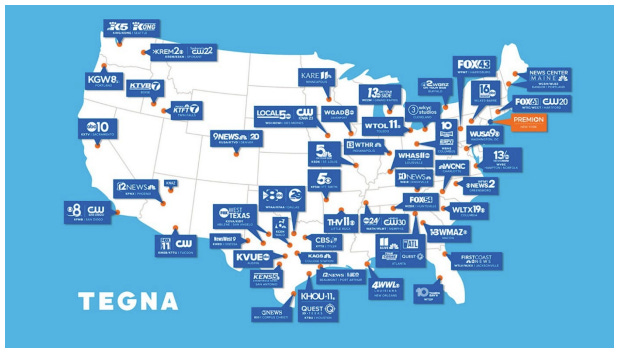 So local broadcast are still where the viewers are. As Nexstar noted, “Big 4 broadcast networks carry the nation’s most- watched programming by a significant margin (including the substantial majority of [NFL] games).” When combined, Tegna and Nexstar would own quite a lot - 265 television stations in 44 states, reaching 80% of households.