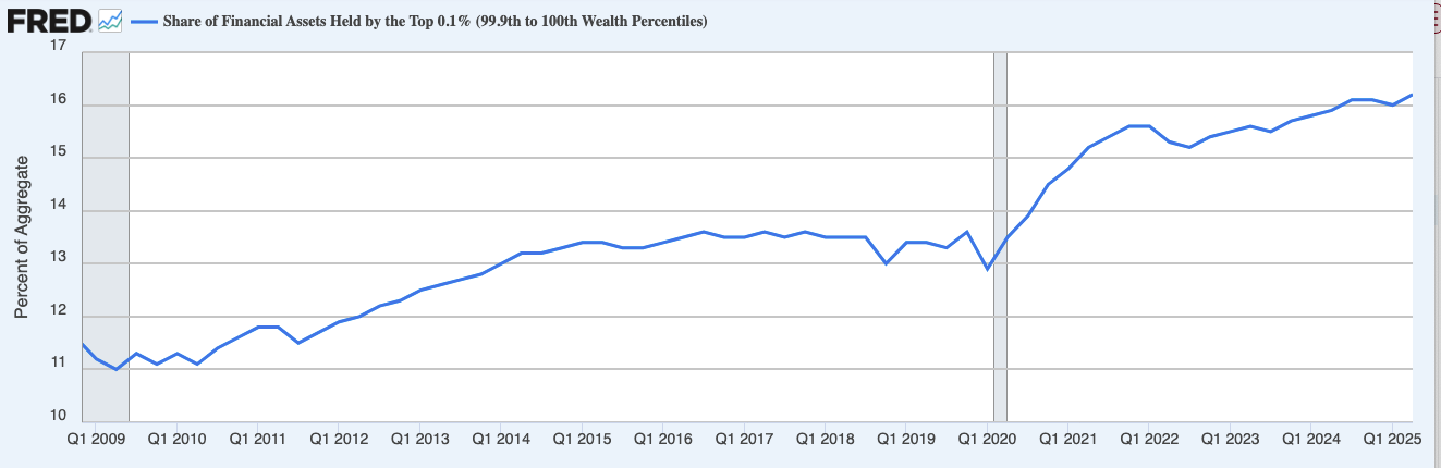 The share of wealth held by the top 0.1% since 2008 versus any other cohort tells the story.