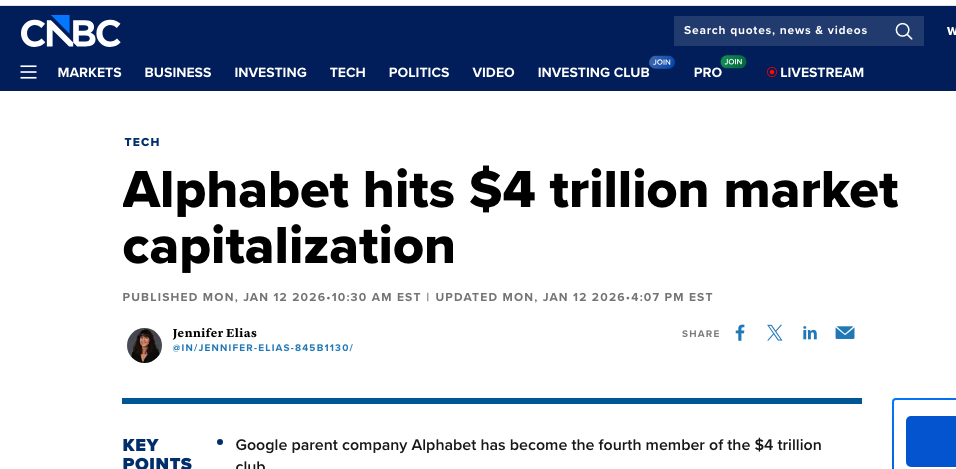 Taken together, these three announcements imply a revolution about how our economy works. And Wall Street has noticed, with Google hitting a $4 trillion valuation.