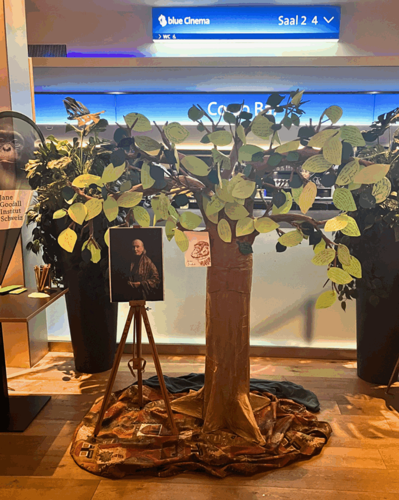 Jane Goodall Institute Switzerland’s memorial service focused on the joy and inspiration Jane brought us. The casual gathering brought together 400 people to watch the movie “Jane” at Blue Cinema Corso in Zurich. After watching the film and discussing the impact of Jane’s life and work on so many people, those who gathered filled in a “Tree of Life” display.