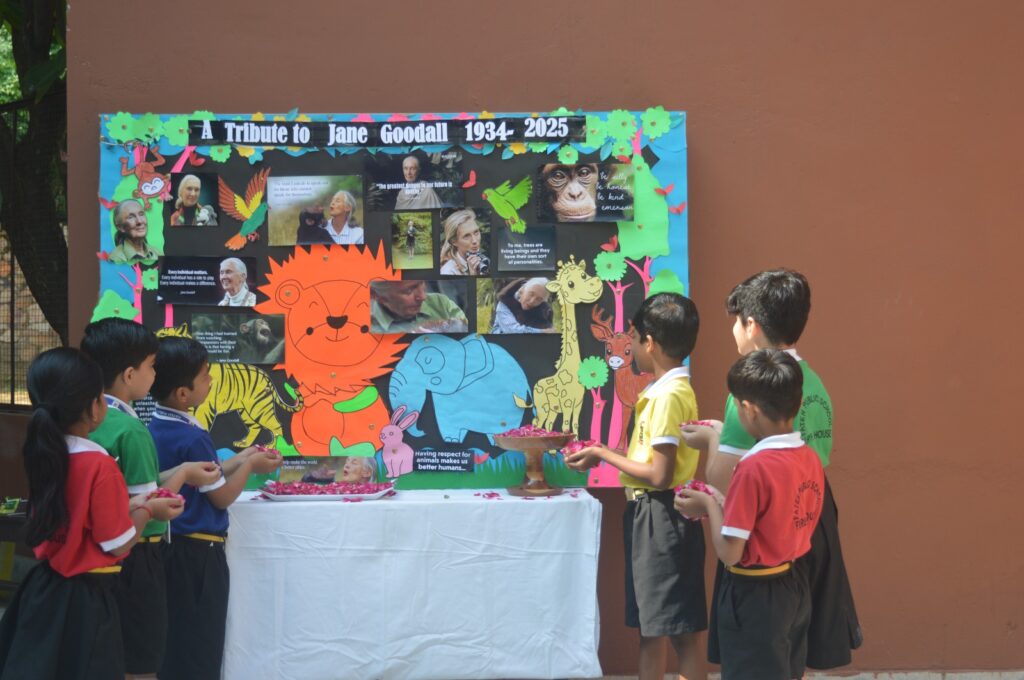 Students participated in documentary screenings highlighting Jane’s journey, created art displays and posters with inspiring quotes, and arranged green tributes symbolizing life and nature, all while embracing her belief that “every individual matters; every individual has a role to play.” These memorials served as a reminder that even small steps, when taken together, can make a lasting impact on the planet and all its inhabitants.
