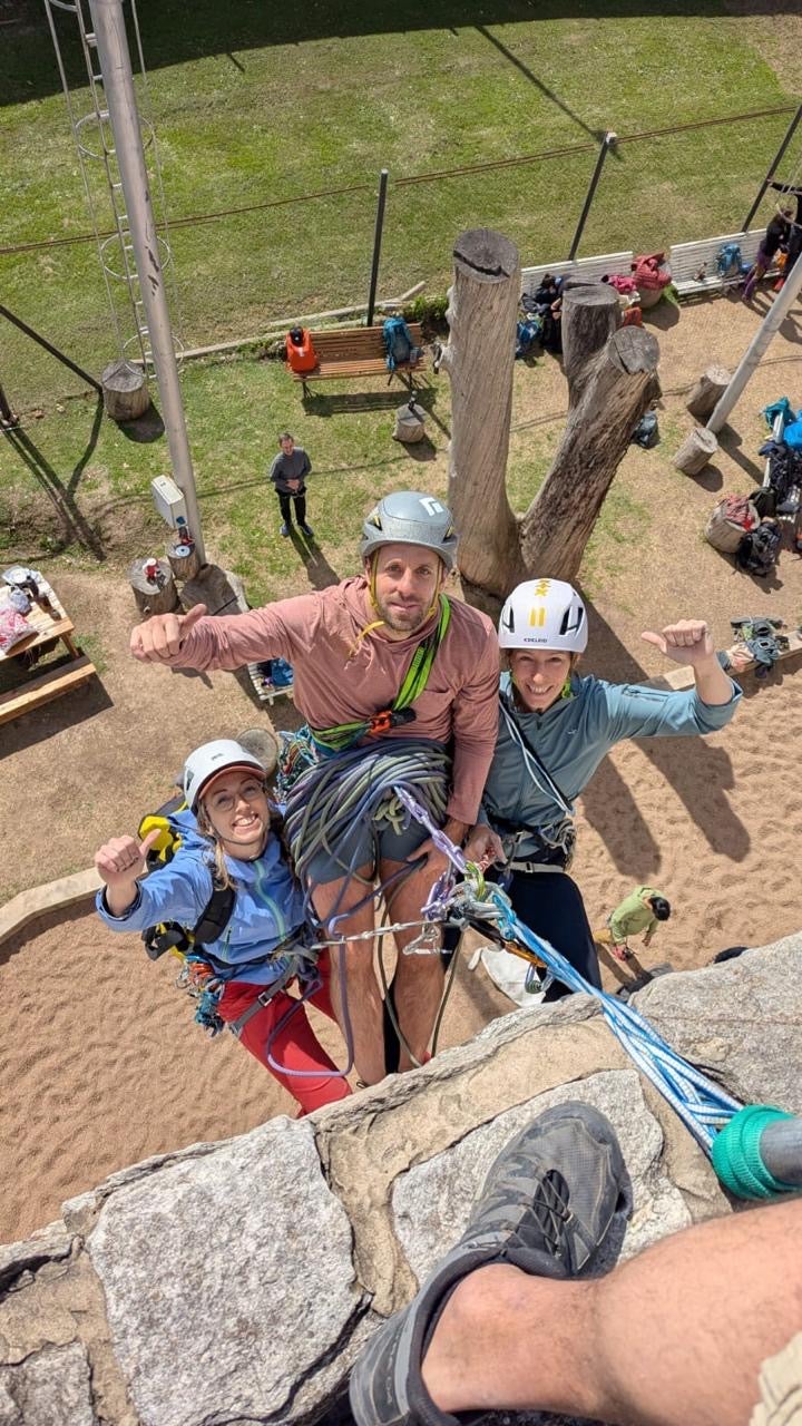 En un fin de semana típico, más de 100 escaladores e instructores acuden a La Palestra para practicar diversas habilidades al aire libre que van más allá del repertorio típico de gimnasio: hand jams, finger cracks, chimeneas, montaje de anclajes, colocación de material, rápel, escalada de varios largos, autorrescate, transiciones de reunión e incluso dry tooling. En el terreno, desconocidos se convierten en conocidos y luego en compañeros de múltiples maneras.