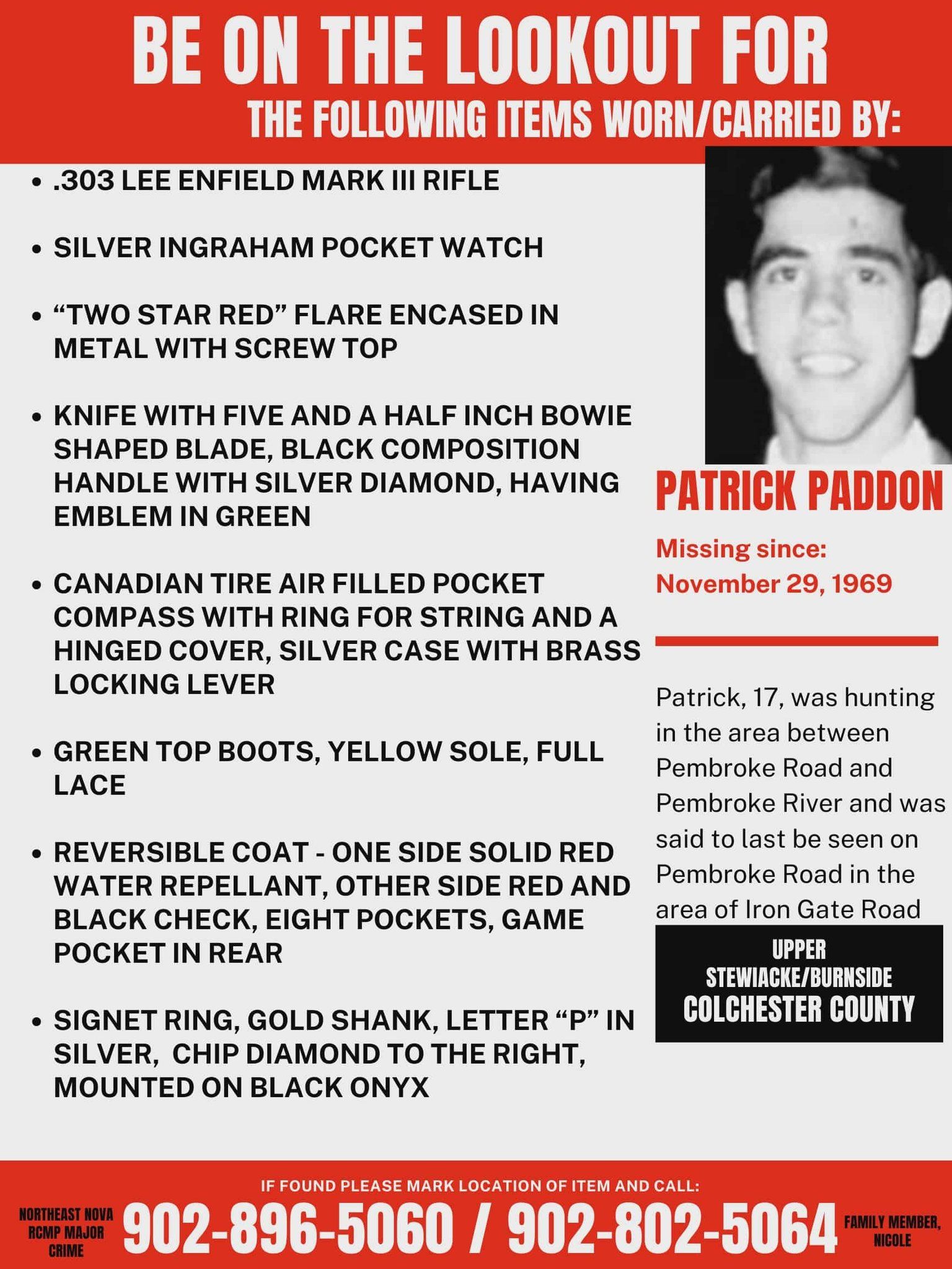 Nov. 29, 1969 was also the last time anyone saw Patrick, who was 17 at the time.