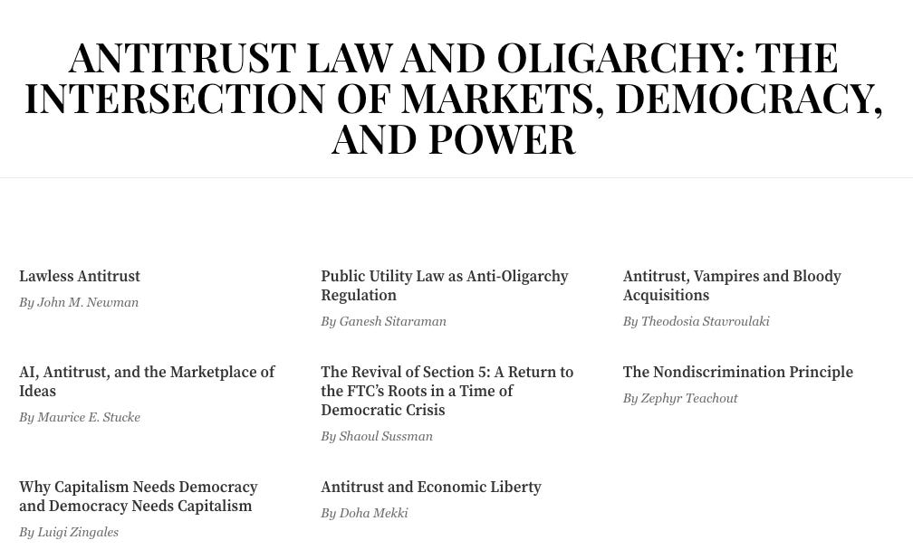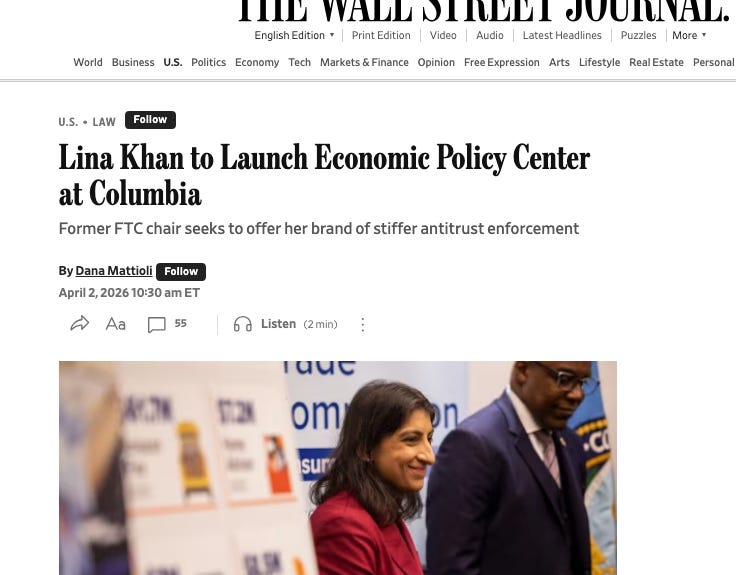 Khan, of course, isn’t alone, she’s leading a movement. For instance, the Fordham Law Review just did an entire issue on Antitrust Law and Oligarchy, with articles by a host of former Biden officials. What these twin intellectual events show is that the movement to tame anti-democratic forces in America is growing, under the radar, in powerful ways.