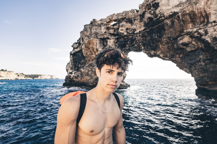 This wasn’t the first feather in Richard’s outdoor cap either—just a few weeks earlier, he sent Chris Sharma’s fabled deep water solo Es Pontás (5.15a/9a+) in Mallorca, Spain. He unlocked the moves after two years and a dozen “intense” sessions on the route. Needless to say, the kid’s had a great fall.