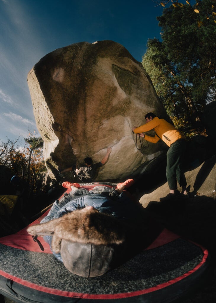 Samuel Richard: The first time I went to this boulder was in April 2023, and it was actually to try its higher version, The Big Island (8C). I don’t climb in Fontainebleau very often, in fact, this is pretty much the only boulder I’ve really tried there.